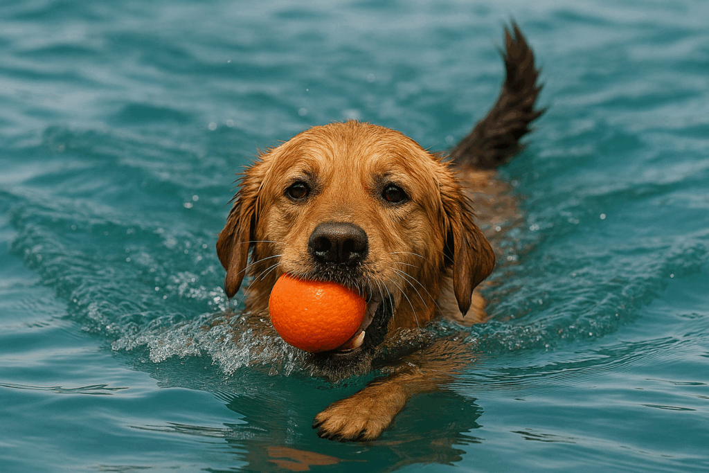 水泳する犬の画像を出して