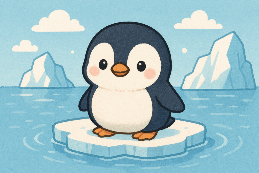 氷の上にペンギンがいる可愛いイラストを作ってください