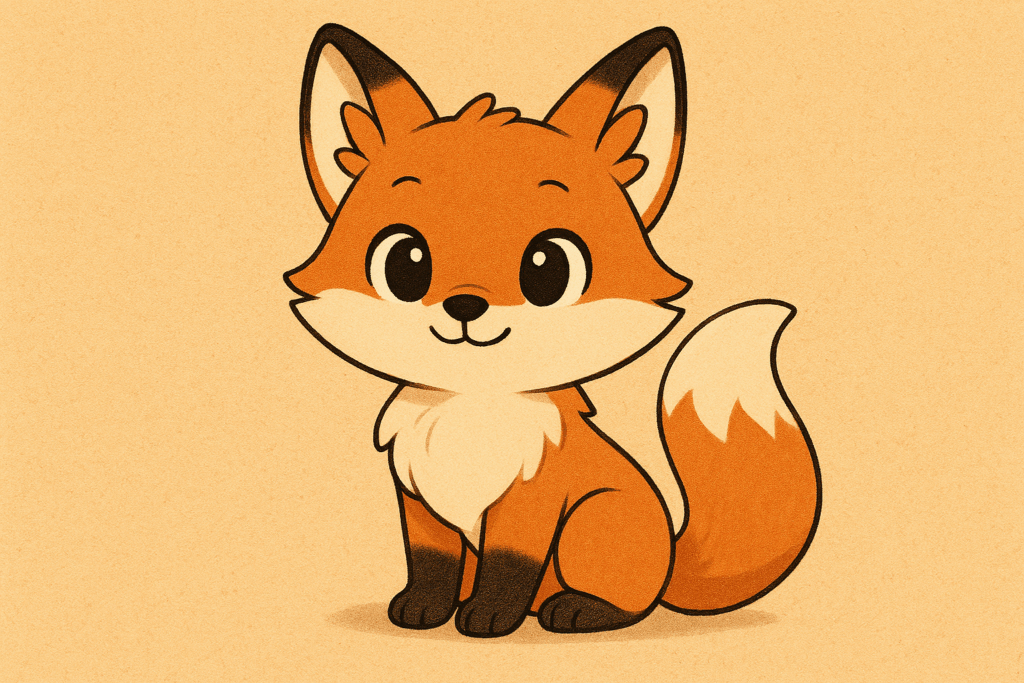 アニメ風のデフォルメしたキツネのイラストを生成してください