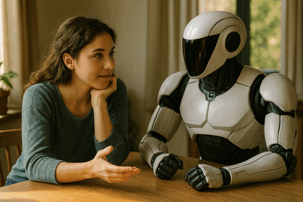 話を聞いてくれる人型ロボットの様子を生成してください。