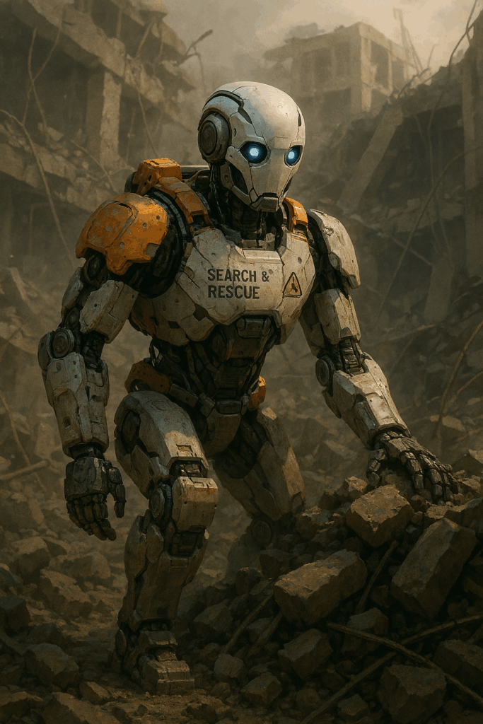 「2040年ごろを想定して、災害救助をする人型ロボットを画像生成してください。」