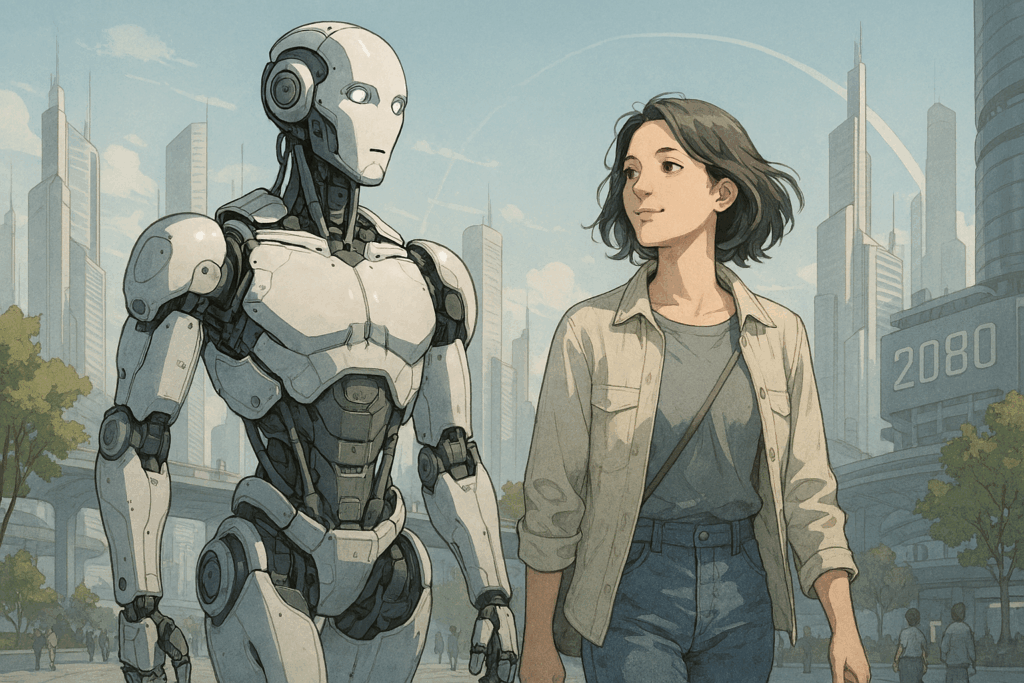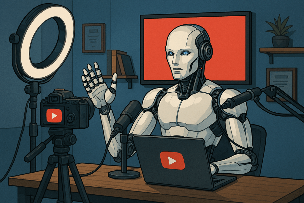 「2040年ごろを想定します。ヒューマノイド型ロボットがYouTuberとして活動している画像を生成してください」