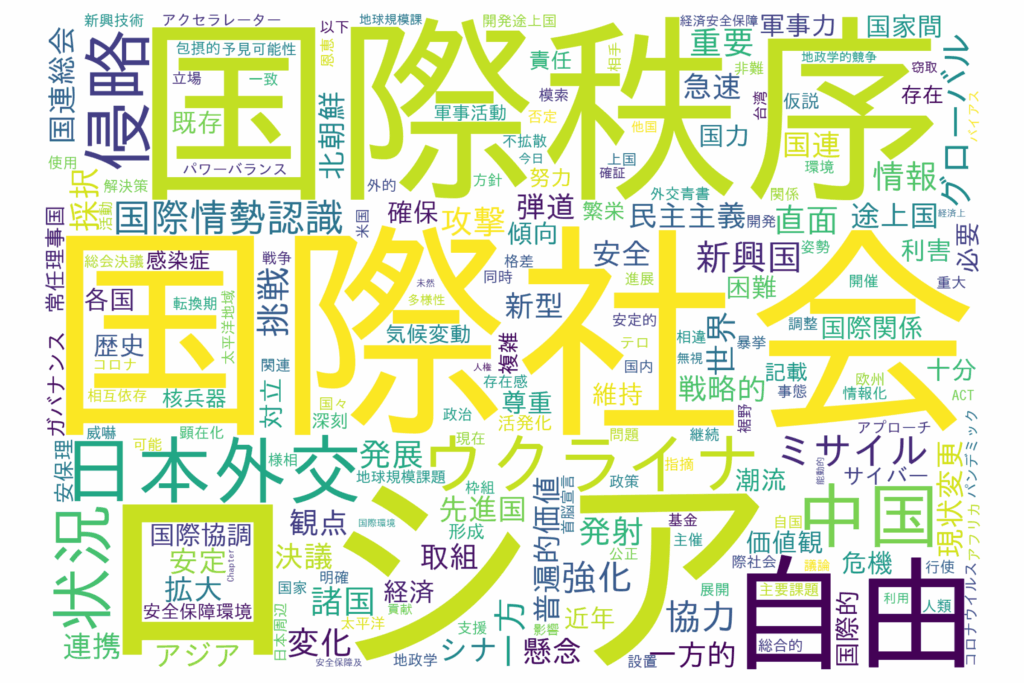 頻出語「ロシア」「侵略」「ウクライナ」は、