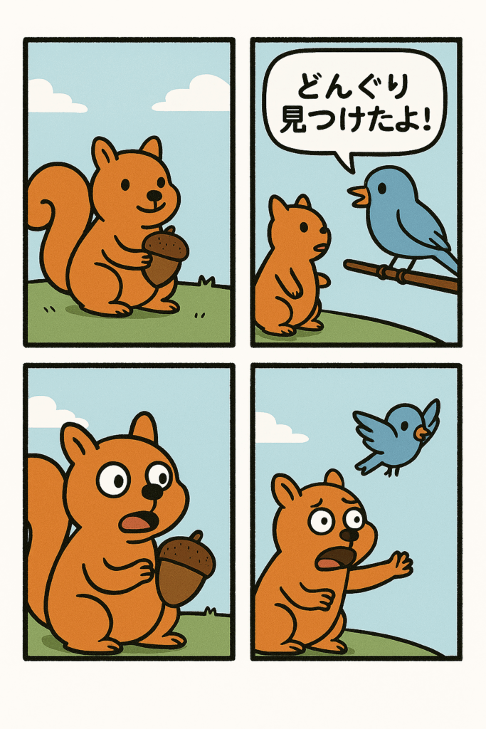 :逆に自分が驚いてしまうオチで笑いを誘います。