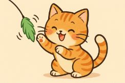 ねこが猫じゃらしで遊んでいるイラストを生成して